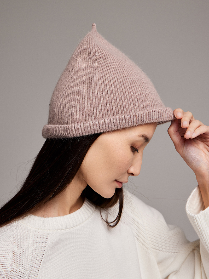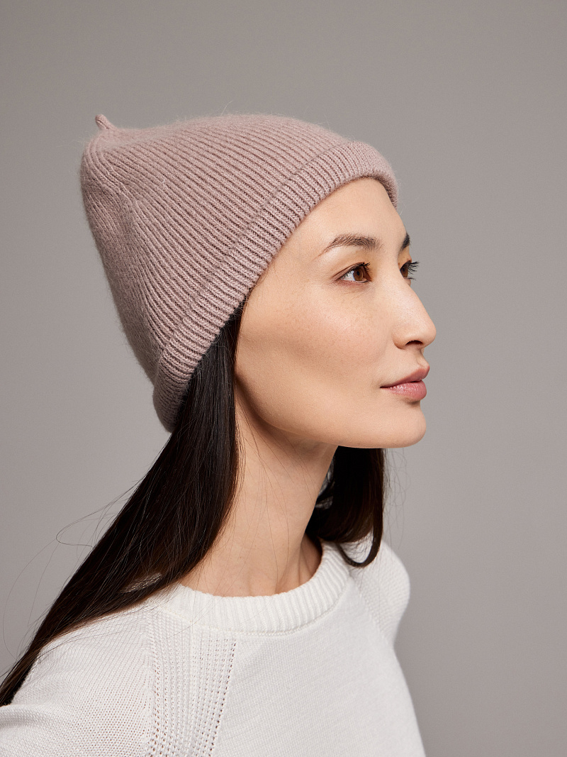 Шапка одинарная 40% ангора, с пимпочкой и коротким отворотом.
