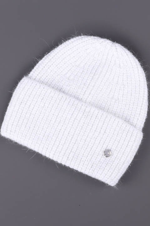 Шапка женская с отворотом одинарная, выполнена из мягкой пряжи "Angora" с добавлением нити люрекса и пряжи "травка". Вязка плотная, эластичная.