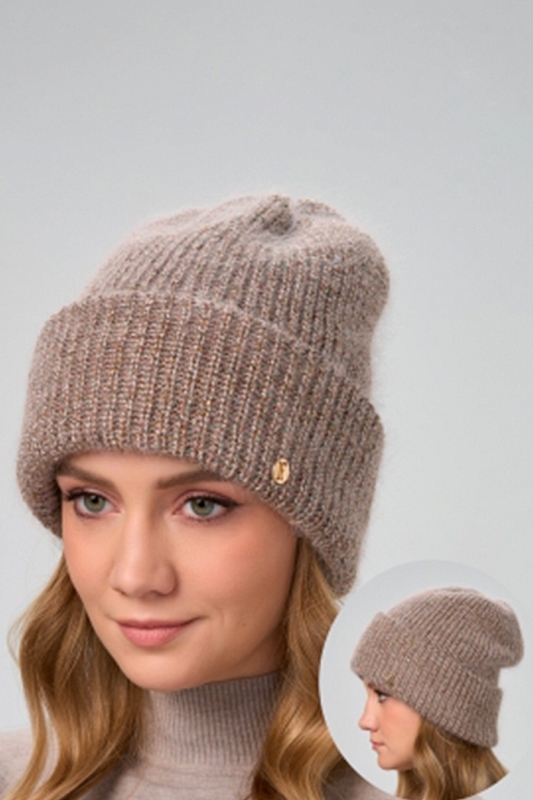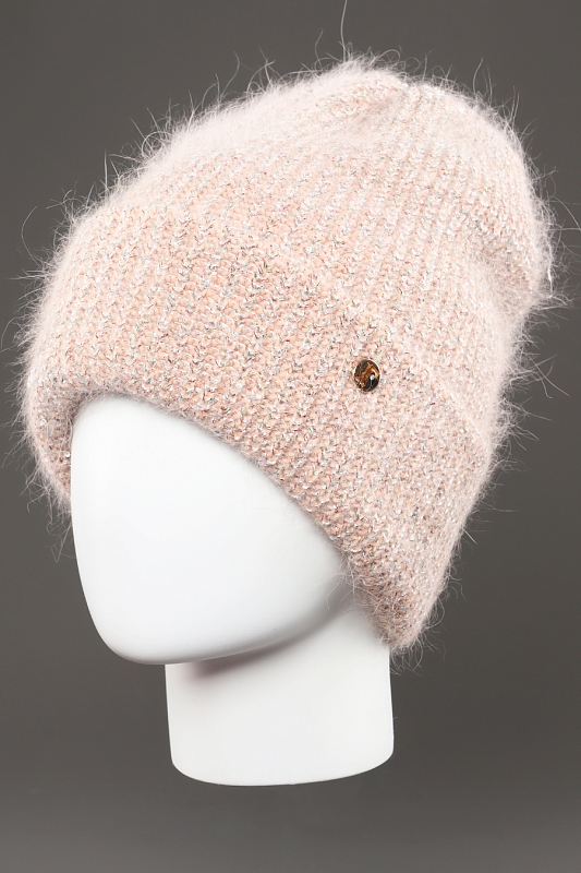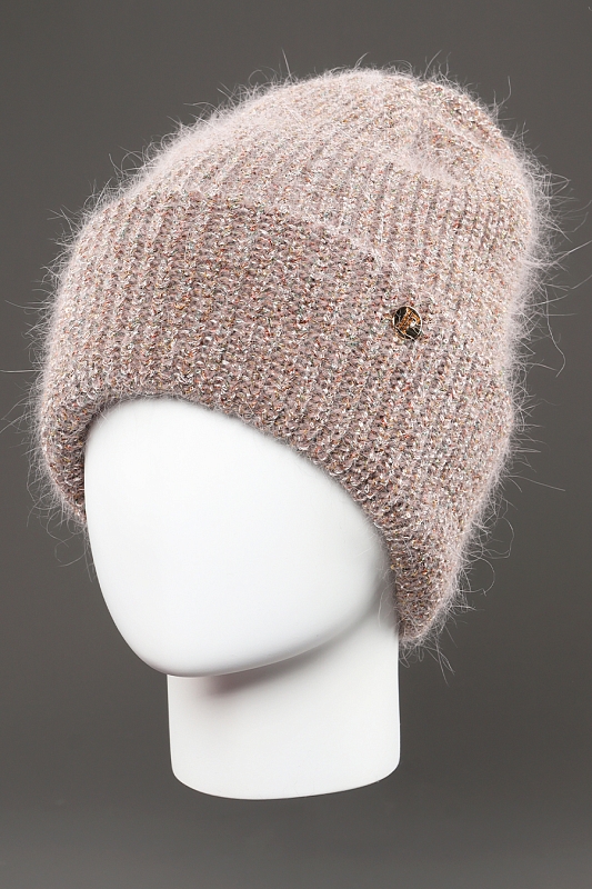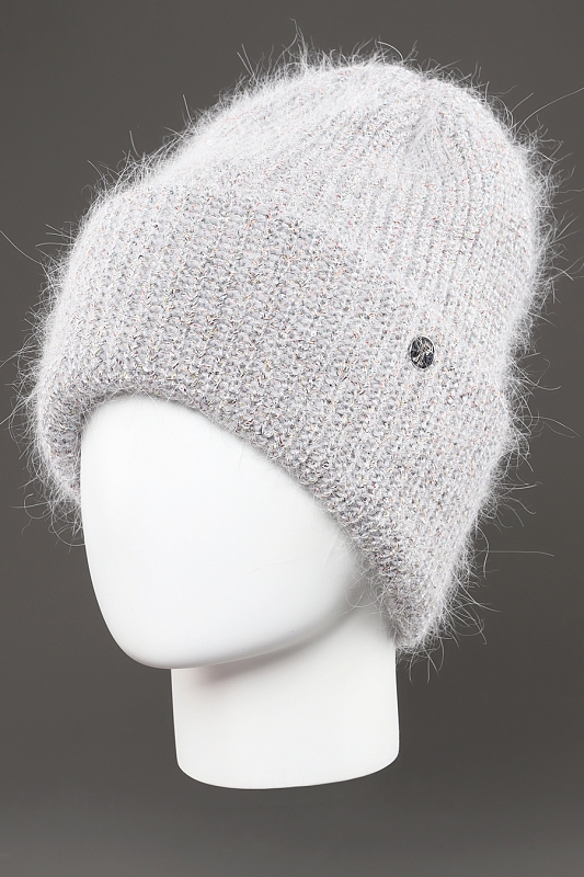 Шапка двойная с отворотом, выполнена из пряжи "Angora" с добавлением нити люрекса и пайеток.