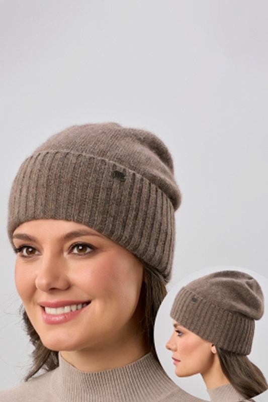 Шапка однослойная с отворотом удлиненной формы, длина модели 26 см. Вязка гладка, плотная.