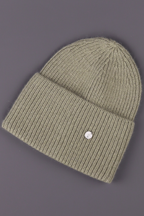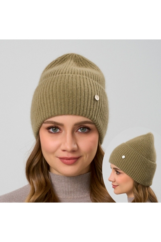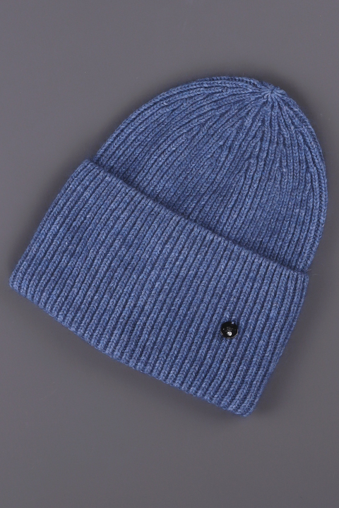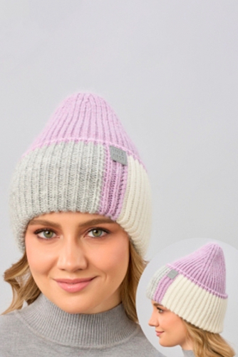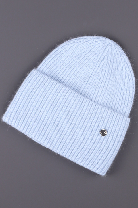 Шапка одинарная с отворотом, выполнена из пряжи с мягкой шерстью енота.