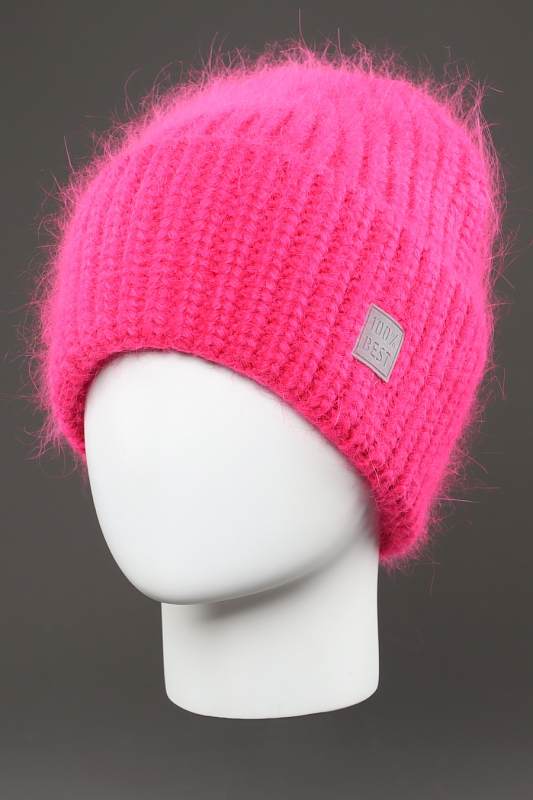 Шапка одинарная с отворотом. Выполнена из пряжи "Angora", крупной вязки.