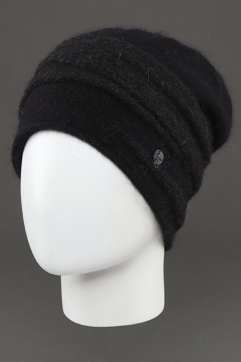 Шапка с подворотом внутрь на 1/3, длина модели 25 см. Выполнена из пушистой, мягкой пряжи "Angora". Вязка плотная и эластичная.