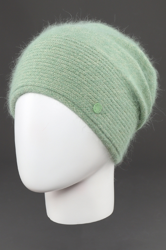 Шапка одинарная с подворотом внутрь 11 см, длина модели 25 см. Выполнена из пушистой, мягкой пряжи "Angora". Вязка плотная и эластичная.