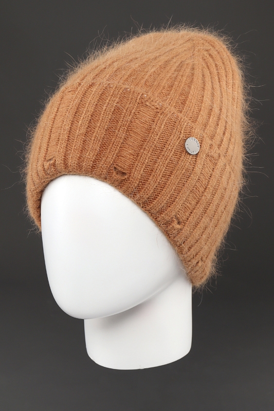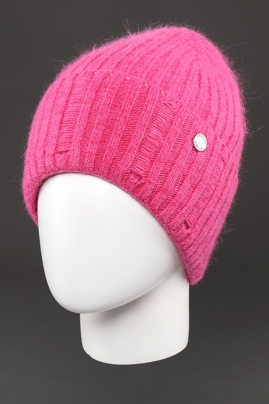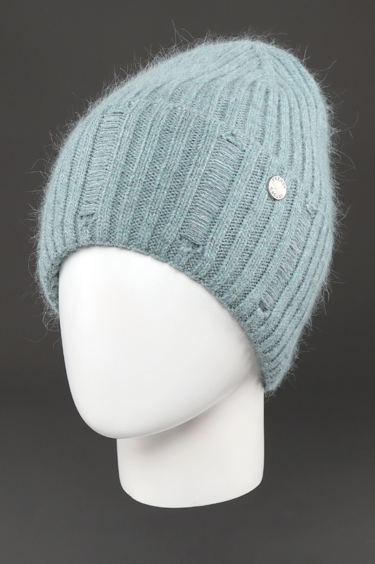 Шапка на флисовом подкладе с декоративными дырочками на отвороте. Выполнена из мягкой пряжи "Angora". Значок может отсутствовать.