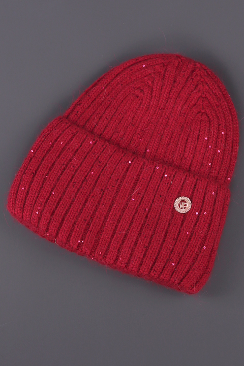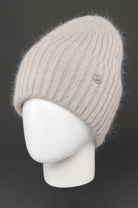 Шапка с отворотом на флисовом подкладе. Выполнена из мягкой пряжи "Angora" с пайетками.