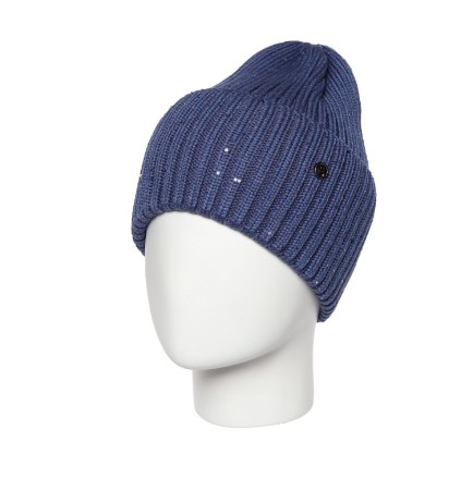 Шапка одинарная с отворотом выполнена из эластичной пряжи с пайетками.