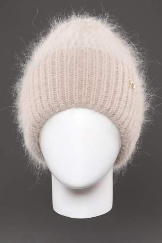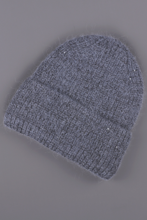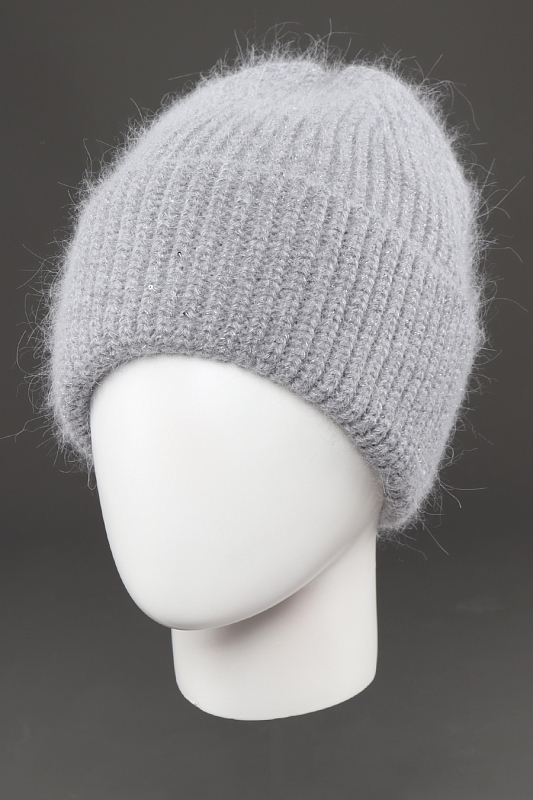 Шапка с отворотом на флисовом подкладе, выполнена из мягкой пряжи ангора с добавлением нити люрекса с пайетками. Вязка плотная и эластичная.