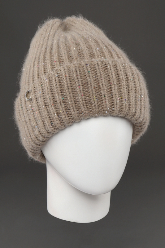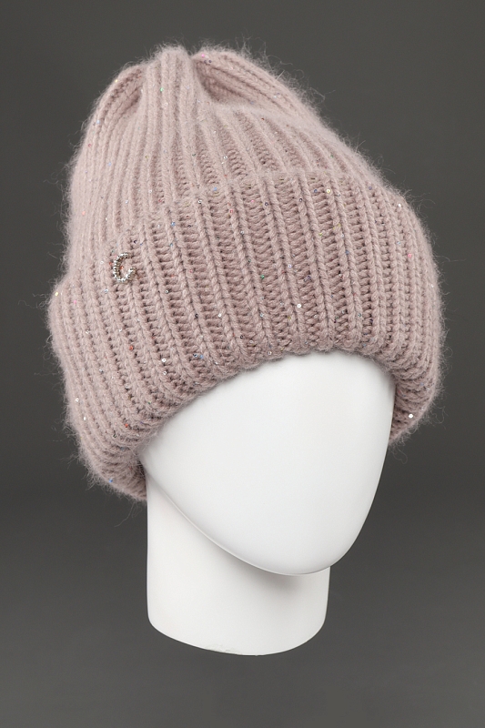 Шапка с двойным отворотом на флисовом подкладе. Выполнена из мягкой, пушистой пряжи с пайетками.