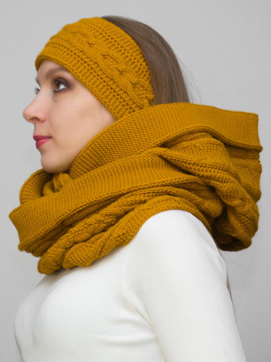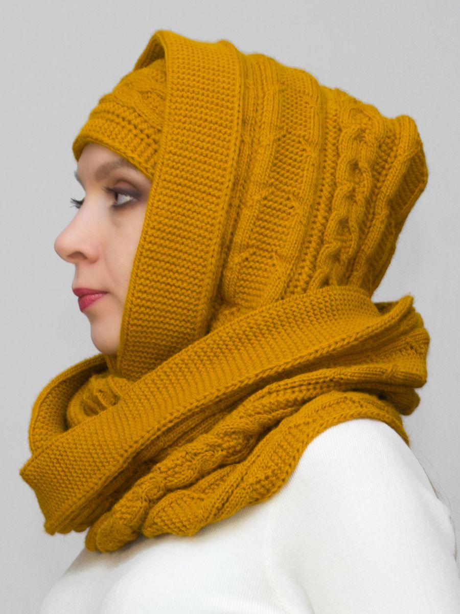 Капор снуд женский Маргарита (Цвет охра), Один размер, шерсть 30%