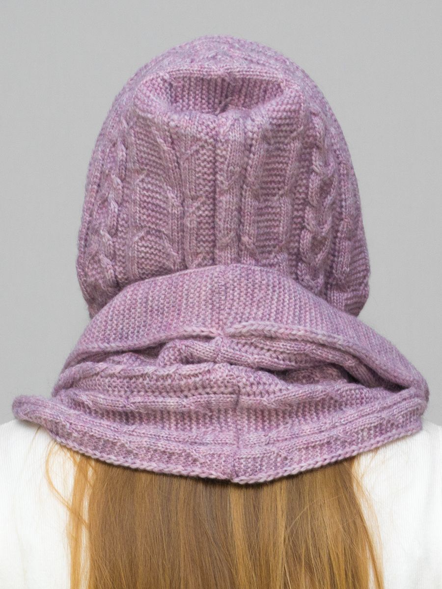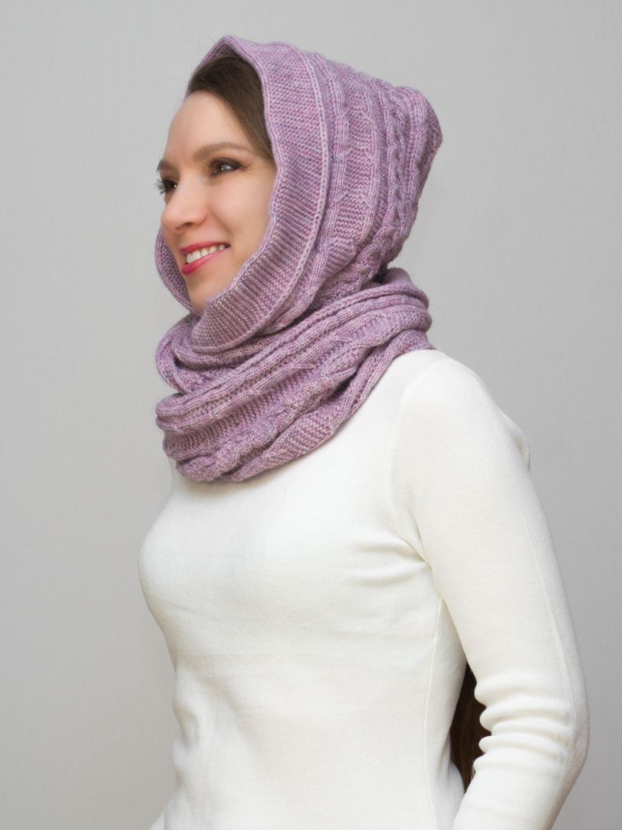 Капор снуд женский Маргарита (Цвет розово-сиреневый), Один размер, шерсть 30%