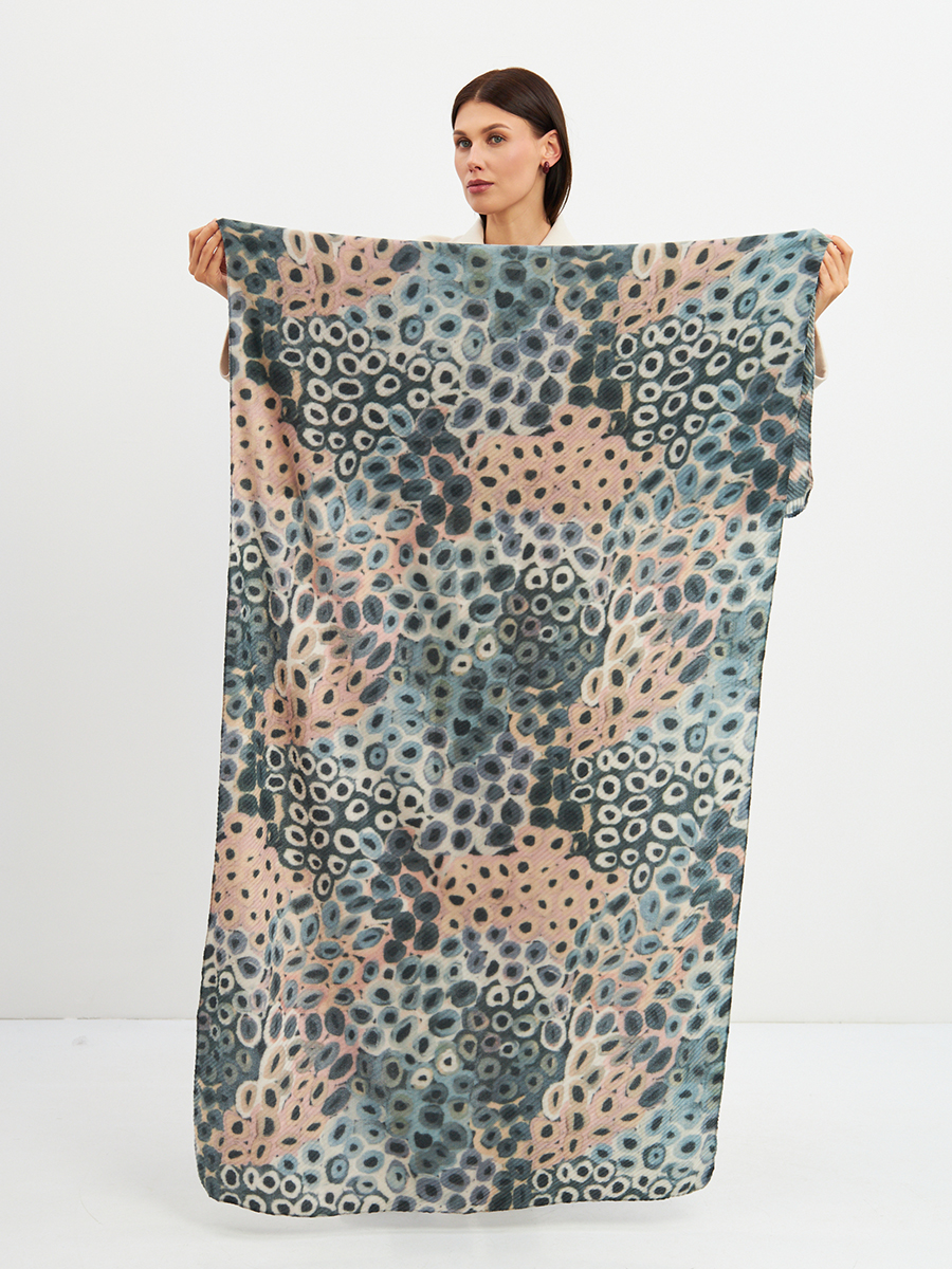 Большой, мягкий, тонкий и очень нежный двусторонний палантин с рисунком. Ткань жатая. Только ручная стирка.