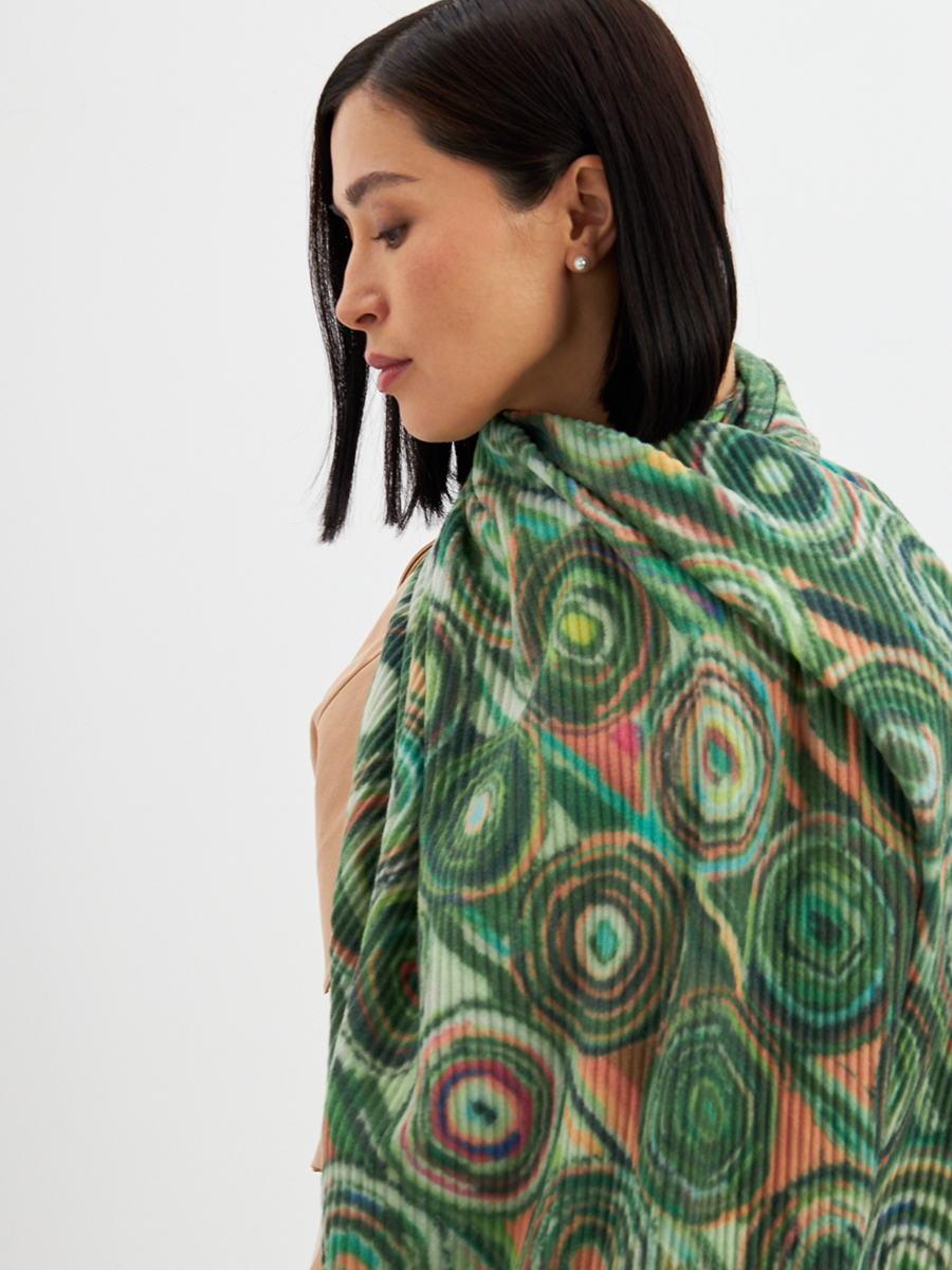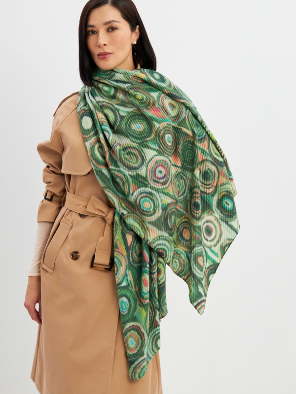 Большой, мягкий, тонкий и очень нежный двусторонний палантин с рисунком. Ткань жатая. Только ручная стирка.