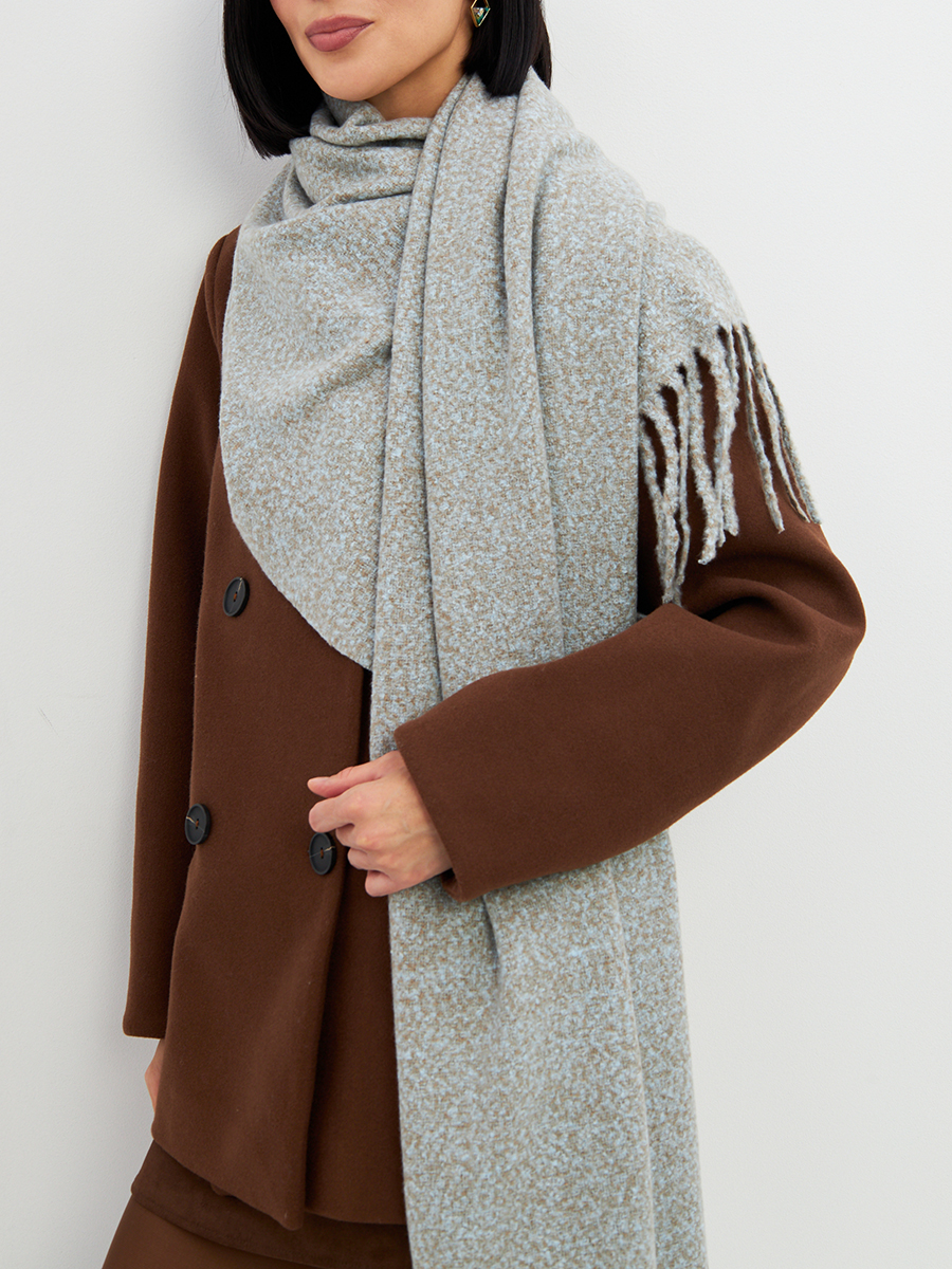 Большой, мягкий, теплый двусторонний однотонный меланжевый палантин. Края изделия украшены бахромой. Машинная деликатная стирка.