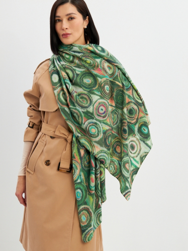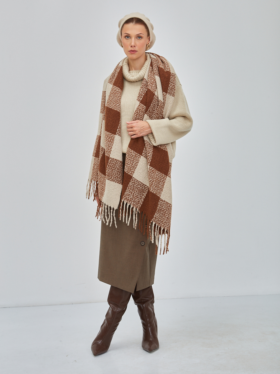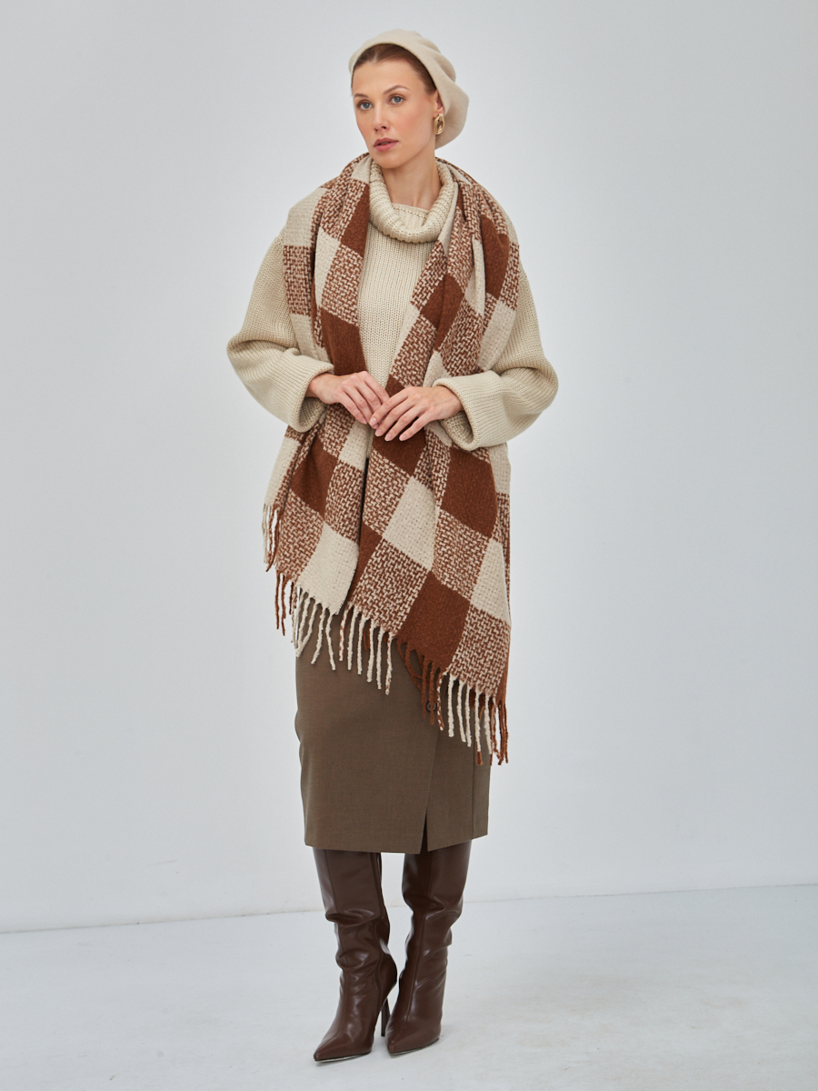 Большой, мягкий, теплый двусторонний палантин с принтом. Края изделия украшены кистями. Только ручная стирка.