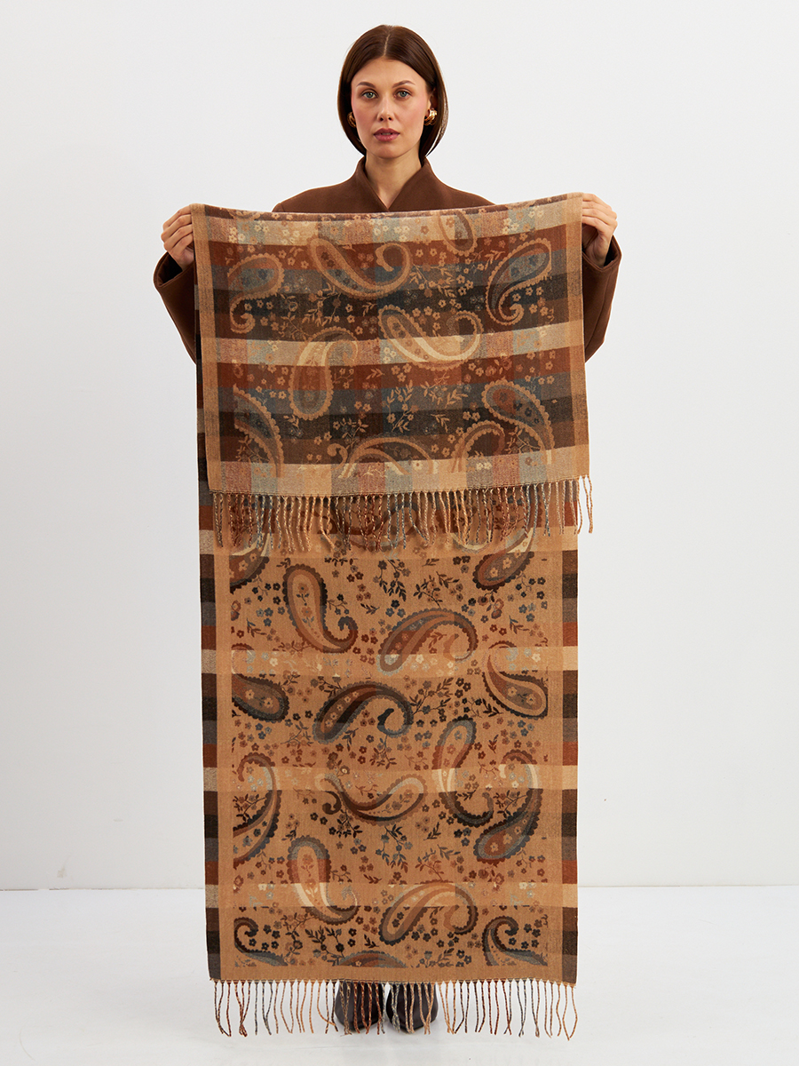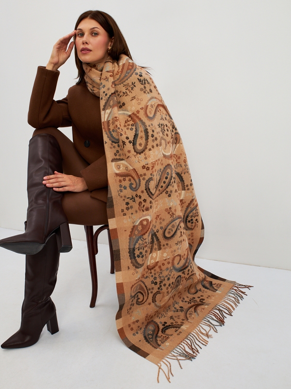 Большой, мягкий, теплый и очень нежный палантин с рисунком. Края изделия украшены бахромой ручной работы. Машинная деликатная стирка.