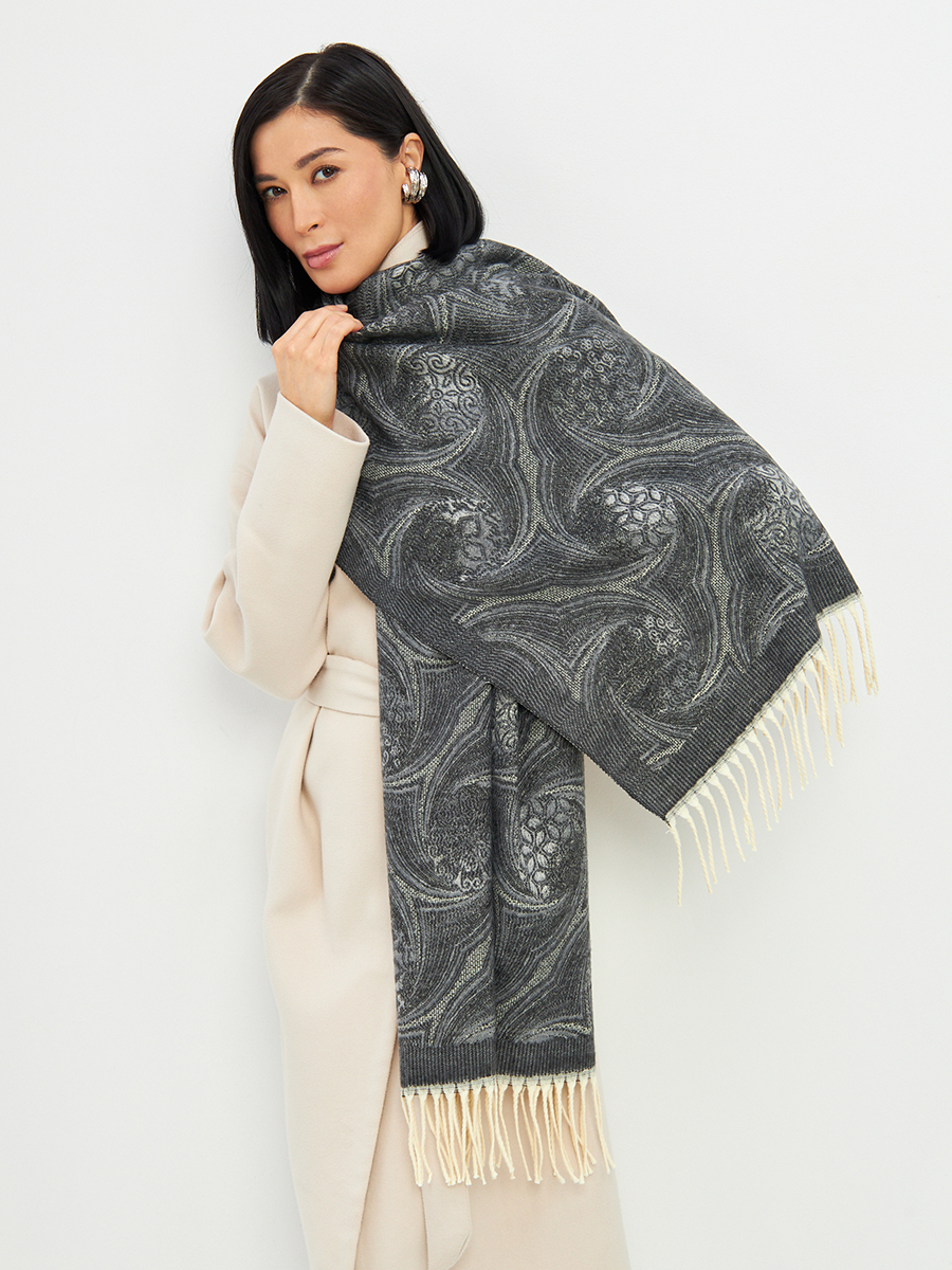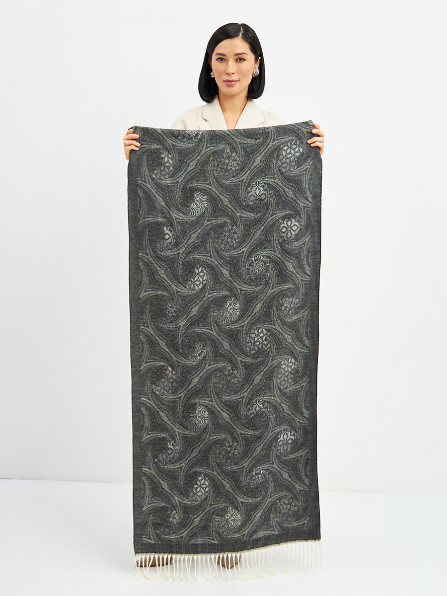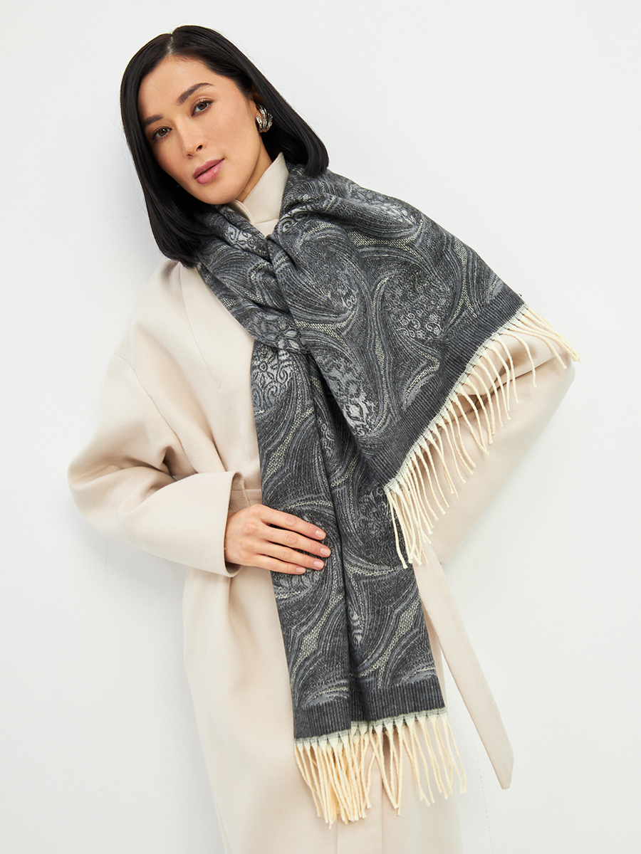 Большой, мягкий, тонкий и очень нежный палантин с рисунком. Края изделия украшены бахромой ручной работы. Машинная деликатная стирка.