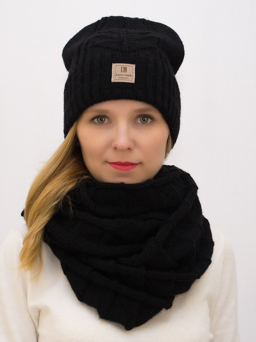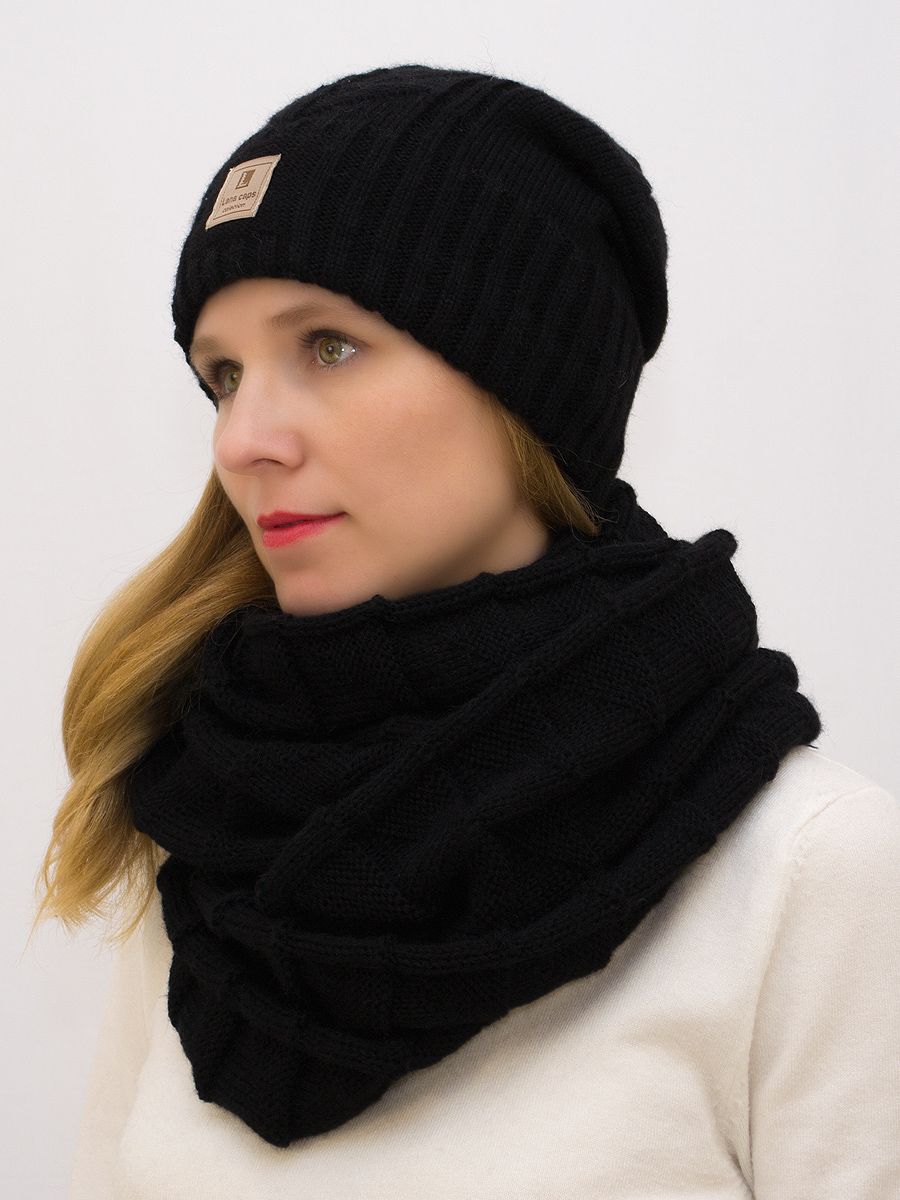Снуд восьмерка женский Есения (Цвет черный), Один размер, шерсть 30%