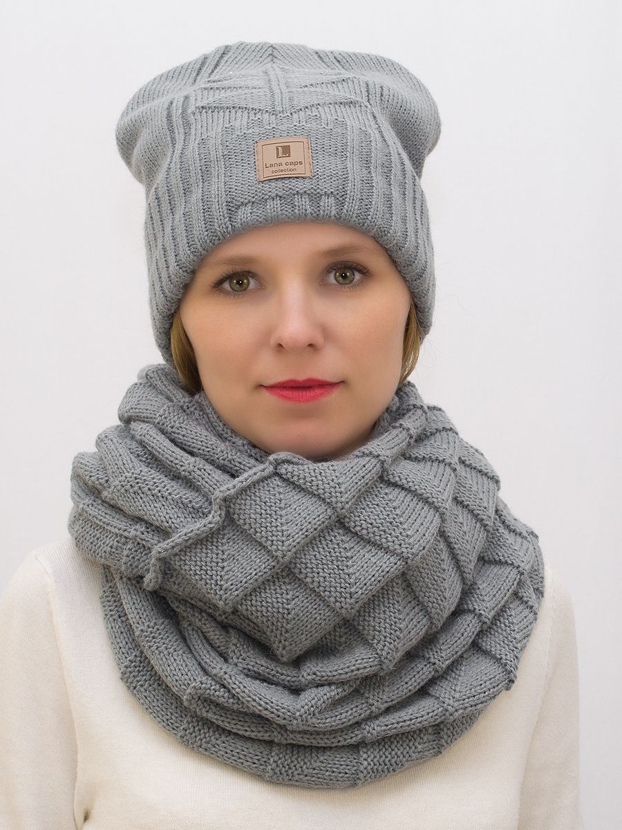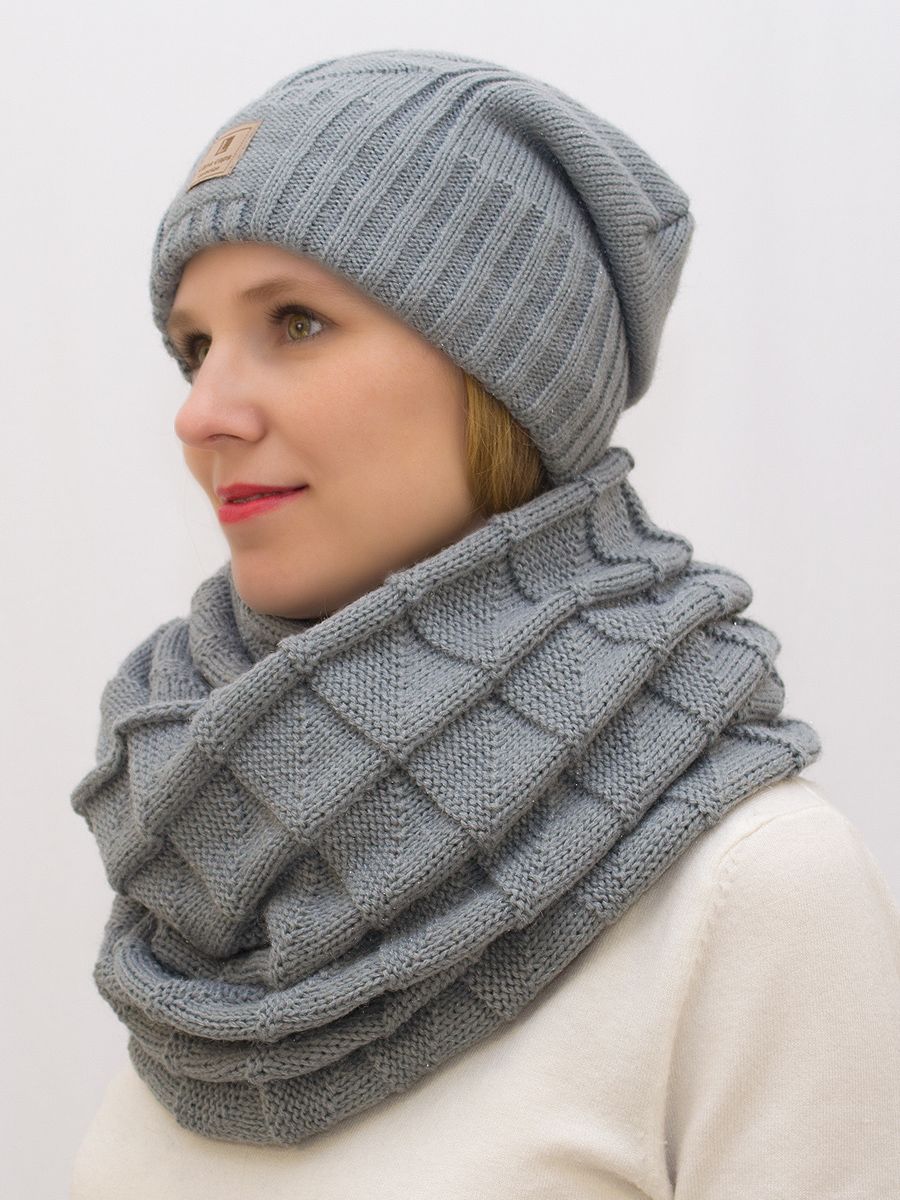 Снуд восьмерка женский Есения (Цвет серый), Один размер, шерсть 30%