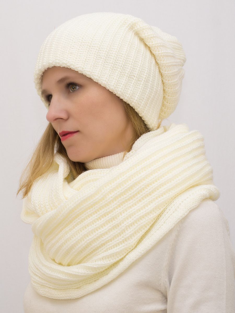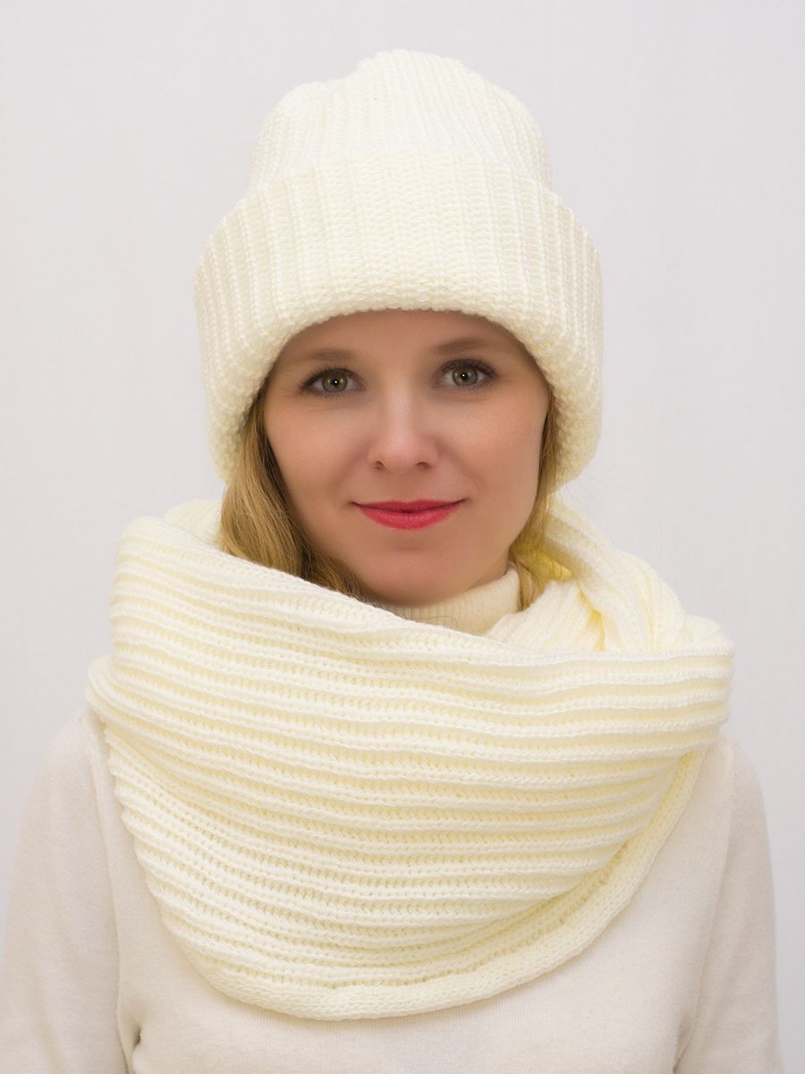 Снуд восьмерка женский Ирина (Цвет молочно-кремовый), Один размер, шерсть 30%