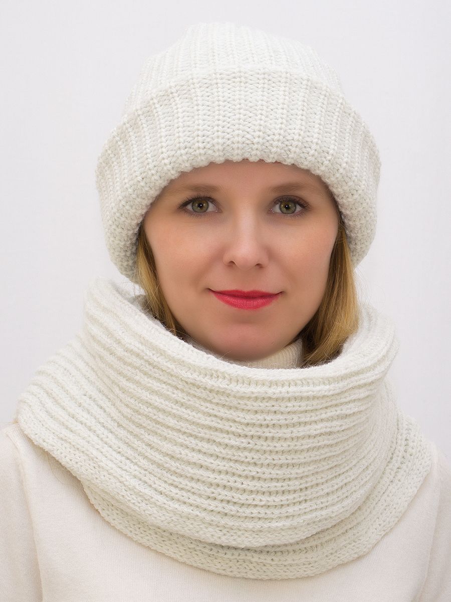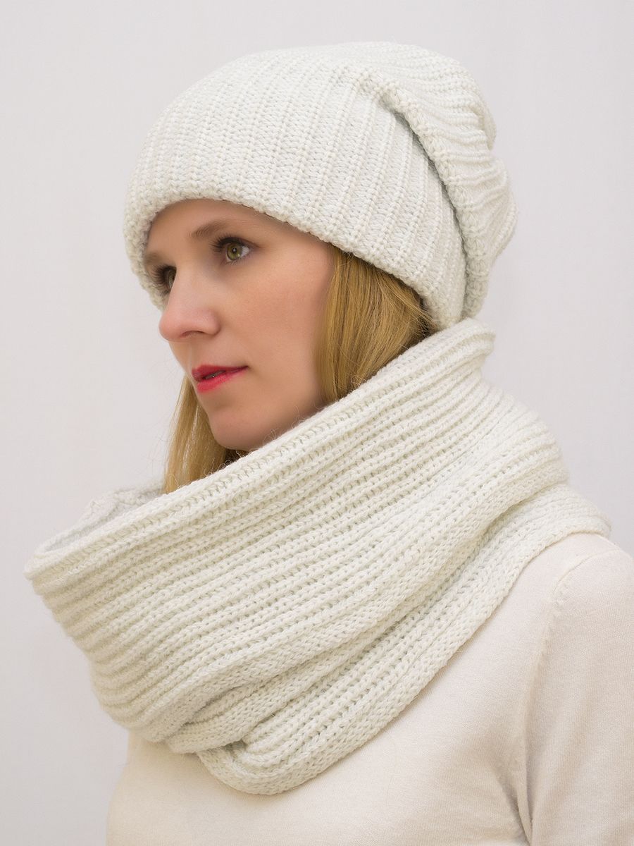 Снуд восьмерка женский Ирина (Цвет молочный), Один размер, шерсть 30%
