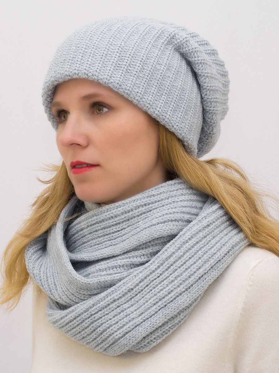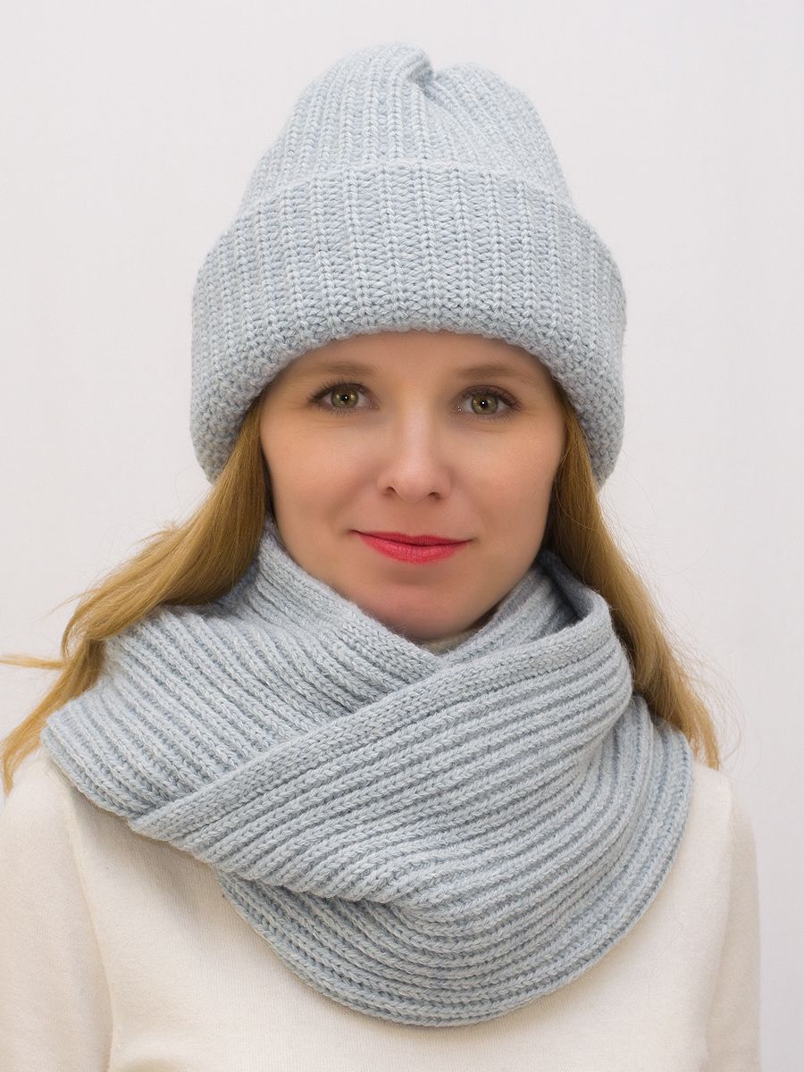 Снуд восьмерка женский Ирина (Цвет светло-серый), Один размер, шерсть 30%