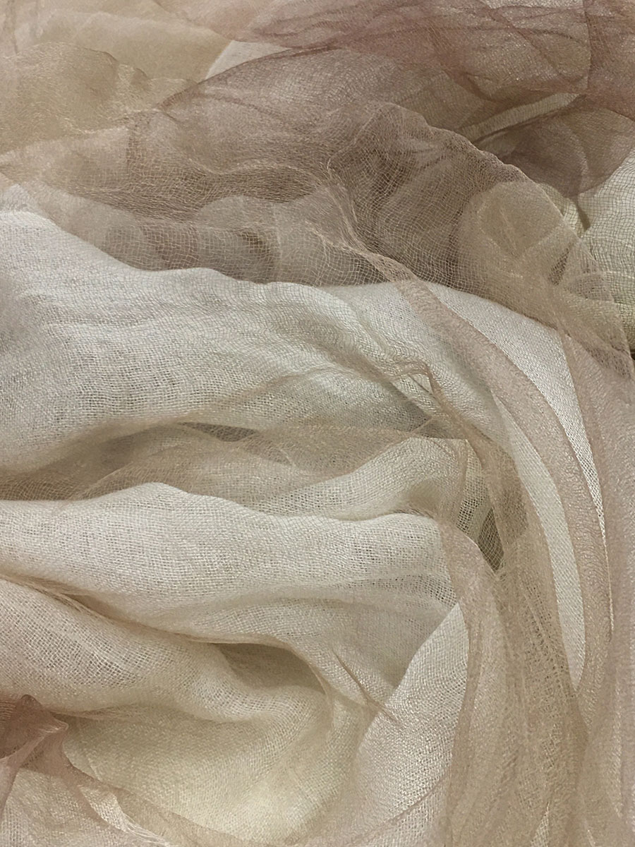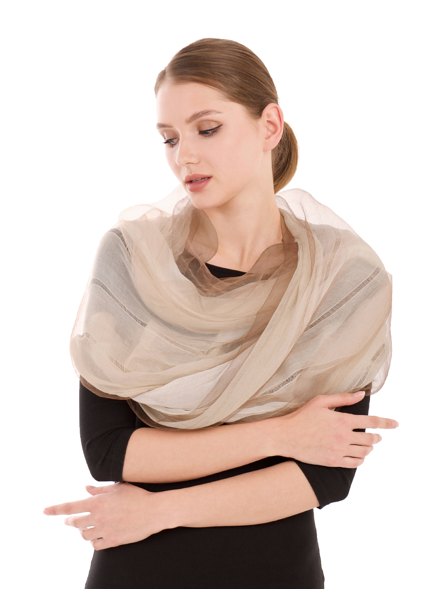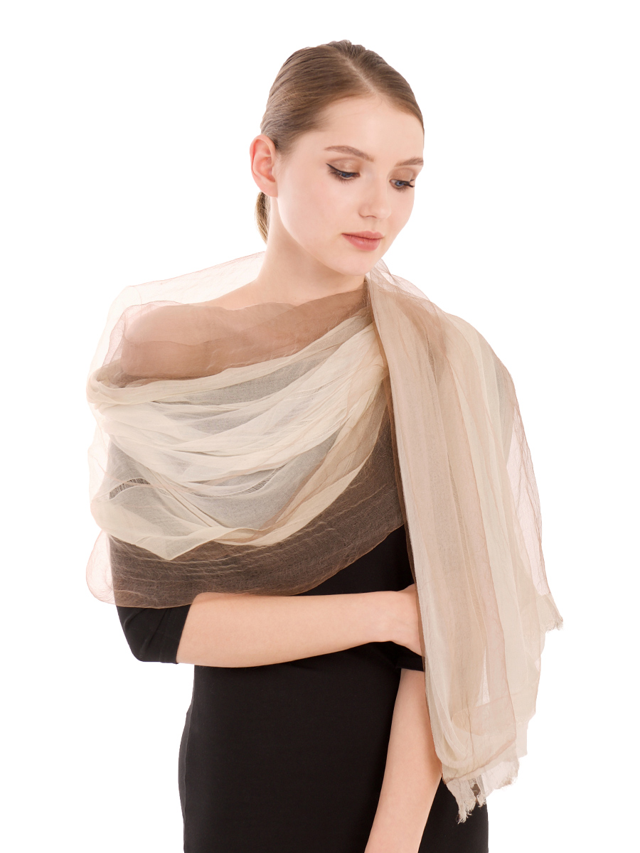 Уникальный своим дизайном двухслойный воздушный палантин не останется без внимания и удачно дополнит как элегантный вечерний образ, так и стильный дневной наряд. Палантин выполнен из нежного шёлка и мягкой шерсти, с использованием исключительной технологии обработки материалов, что позволяет на себе ощутить необычайную невесомость этих натуральных тканей. Удачная комбинация материалов и специальная окраска волокон позволили сохранить естественный блеск шёлка и задать глубокую, но мягкую цветовую гамму шерсти с переходом цвета, которая подчеркнет вашу индивидуальность и выделит среди остальных.