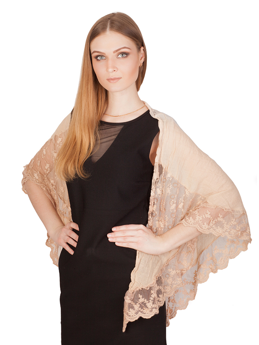 Уникальная своим кружевным дизайном косынка из качественного хлопка и вискозы станет для вас уникальным аксессуаром, сочетающим в себе сразу несколько свойств. Благодаря удачной комбинации натуральных тканей изделие не останется без внимания и удачно дополнит как элегантный вечерний образ, так и легкий стильный дневной наряд. Оригинальная гамма расцветок и стильное сочетание цветов выгодно выделит любой ваш образ, а кружева добавят женственности и романтичности.