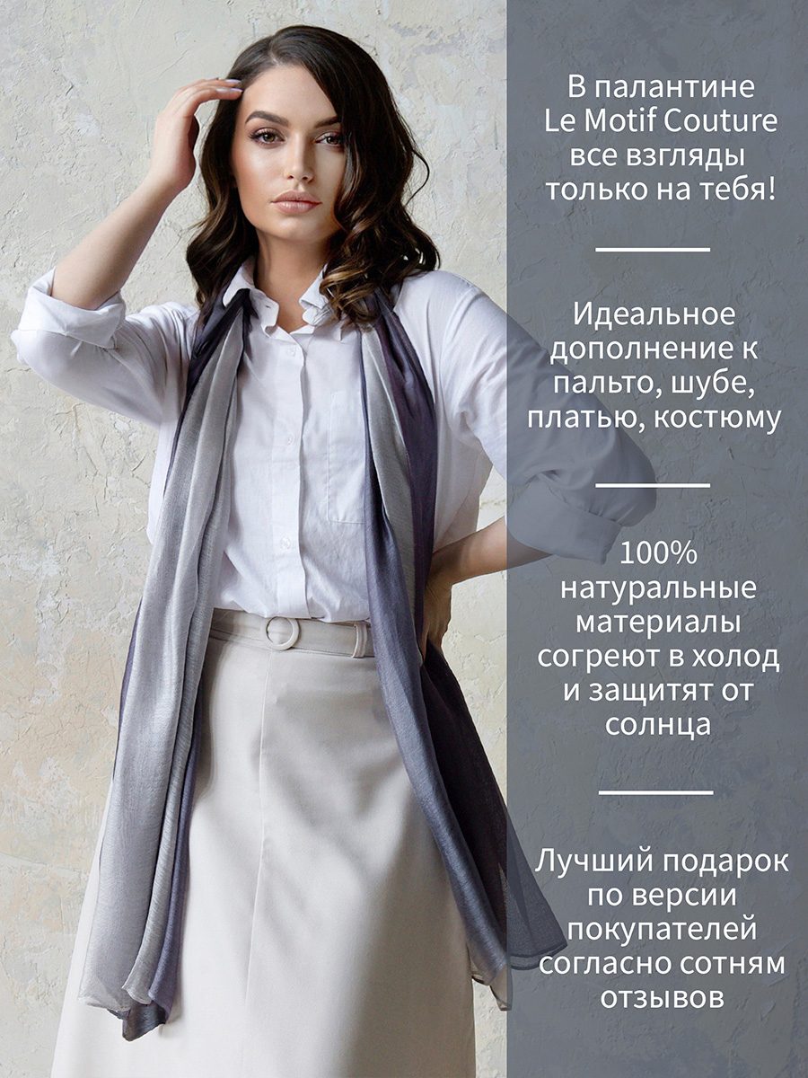 Яркий, привлекательный палантин из высококачественного шёлка с добавлением натурального модала создан на основе бестселлера, коллекции «Шёлковый путь» Этот стильный аксессуар сделает ваш образ еще более женственным и элегантным, а легкая, воздушная текстура ткани подарит ощущение необычайного комфорта. Уникальная цветовая палитра палантина с переходом цвета подчеркнет вашу индивидуальность и выделит среди остальных. С таким аксессуаром вы всегда будете чувствовать себя уверенно и останетесь довольны тем, как вы выглядите.