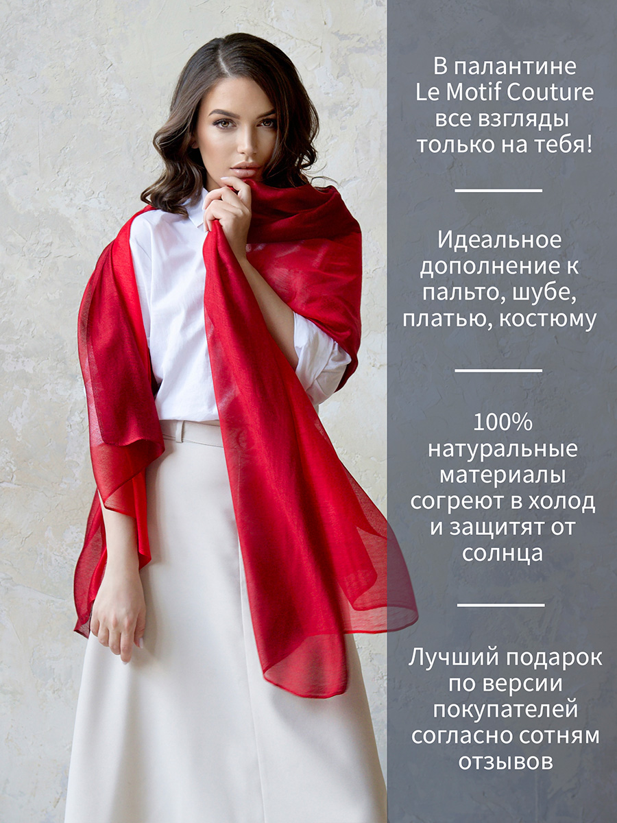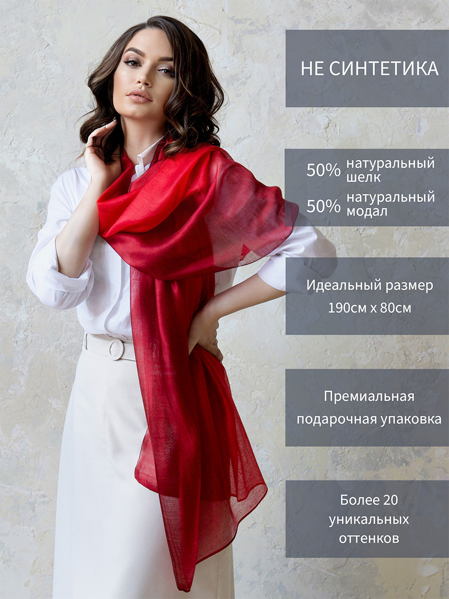 Яркий, привлекательный палантин из высококачественного шёлка с добавлением натурального модала создан на основе бестселлера, коллекции «Шёлковый путь» Этот стильный аксессуар сделает ваш образ еще более женственным и элегантным, а легкая, воздушная текстура ткани подарит ощущение необычайного комфорта. Уникальная цветовая палитра палантина с переходом цвета подчеркнет вашу индивидуальность и выделит среди остальных. С таким аксессуаром вы всегда будете чувствовать себя уверенно и останетесь довольны тем, как вы выглядите.
