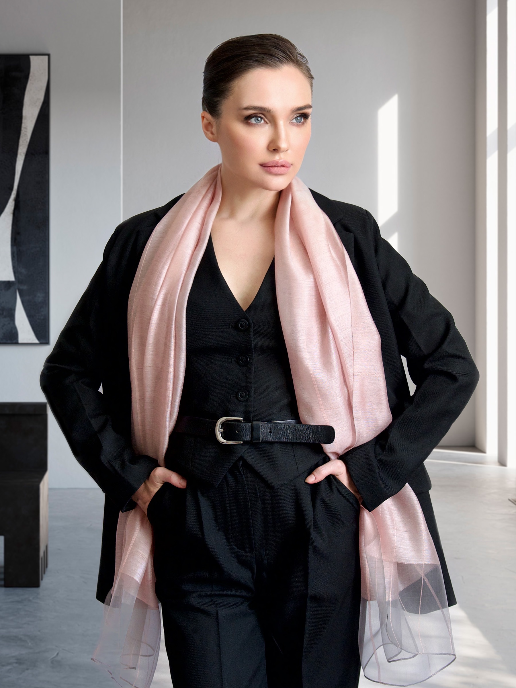 Уникальный своим дизайном мягкий шелковый палантин не останется без внимания и удачно дополнит как элегантный вечерний образ, так и стильный дневной наряд. Палантин выполнен из нежного шёлка и мягкой шерсти, с декоративной отделкой из мягкой нити. Удачная комбинация материалов и специальная окраска волокон позволили сохранить естественный блеск шёлка и задать глубокую, но мягкую цветовую гамму шерсти. Такой аксессуар подчеркнет вашу индивидуальность и выделит среди остальных.