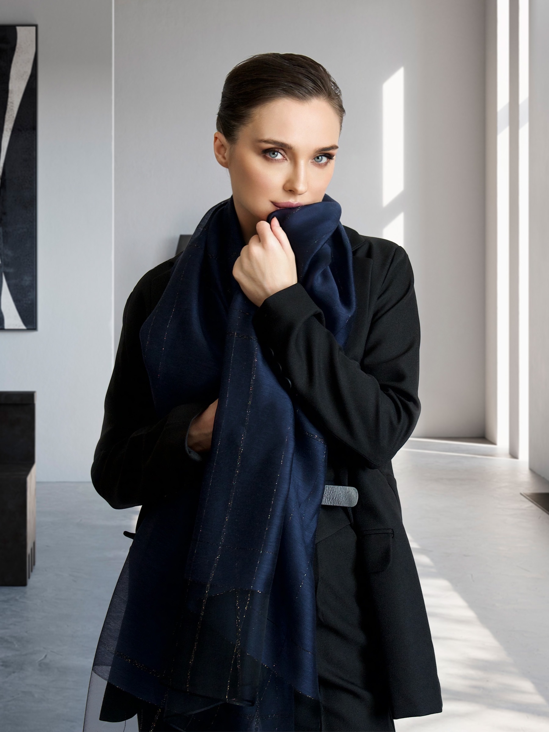 Уникальный своим дизайном мягкий шелковый палантин не останется без внимания и удачно дополнит как элегантный вечерний образ, так и стильный дневной наряд. Палантин выполнен из нежного шёлка и мягкой шерсти, с декоративной отделкой из мягкой нити. Удачная комбинация материалов и специальная окраска волокон позволили сохранить естественный блеск шёлка и задать глубокую, но мягкую цветовую гамму шерсти. Такой аксессуар подчеркнет вашу индивидуальность и выделит среди остальных.