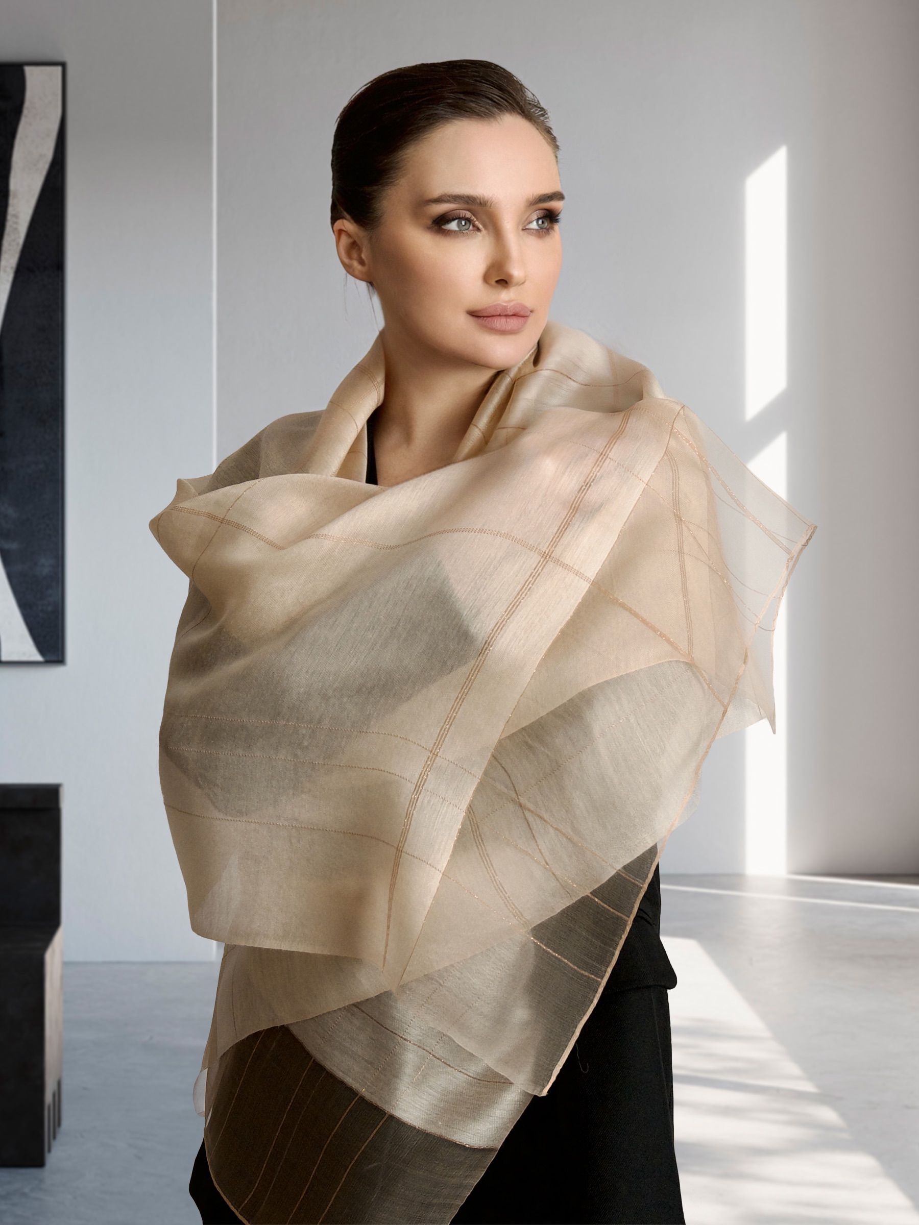 Уникальный своим дизайном мягкий шелковый палантин не останется без внимания и удачно дополнит как элегантный вечерний образ, так и стильный дневной наряд. Палантин выполнен из нежного шёлка и мягкой шерсти, с декоративной отделкой из мягкой нити. Удачная комбинация материалов и специальная окраска волокон позволили сохранить естественный блеск шёлка и задать глубокую, но мягкую цветовую гамму шерсти. Такой аксессуар подчеркнет вашу индивидуальность и выделит среди остальных.