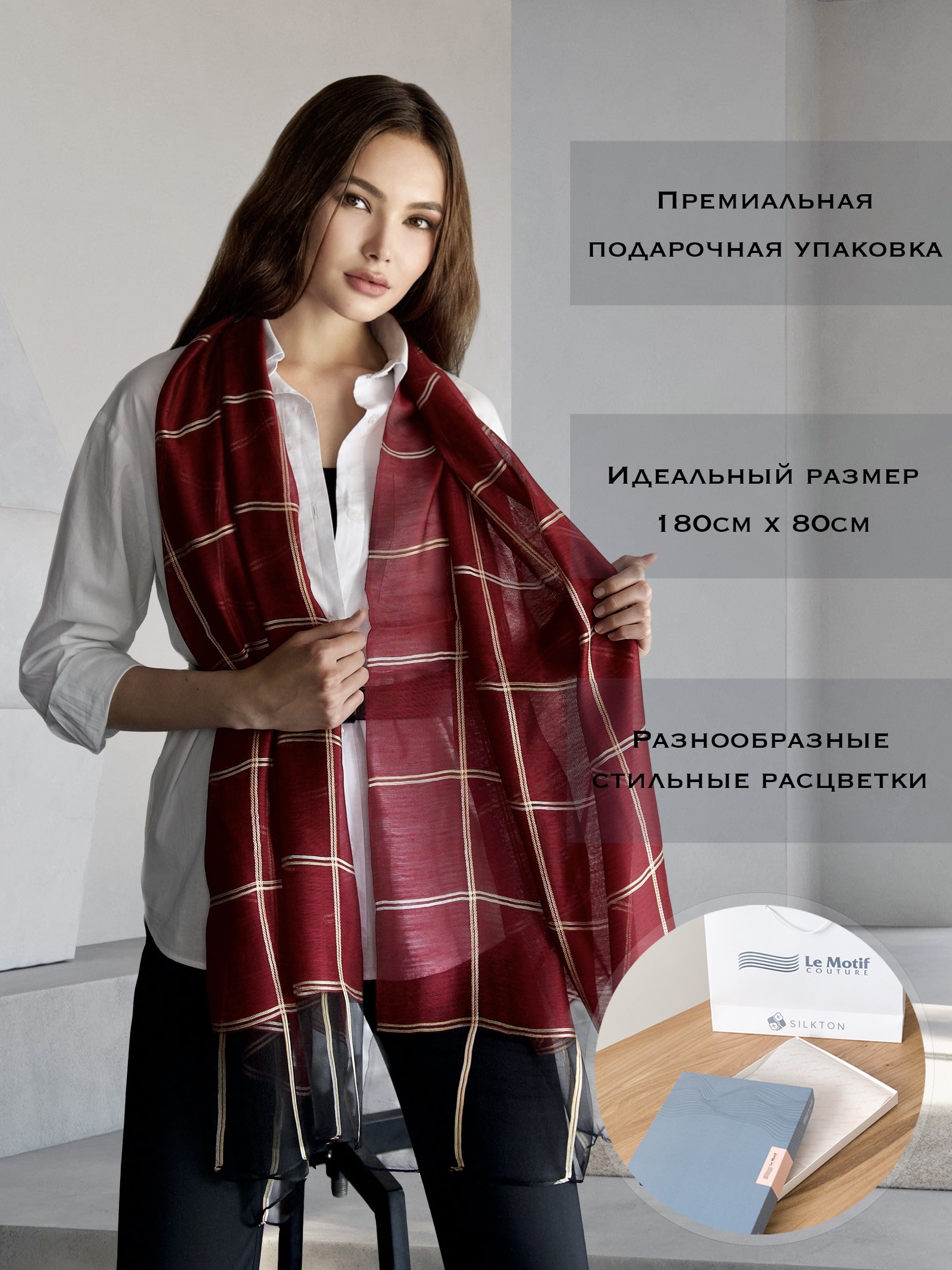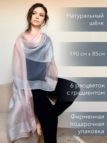 Уникальный своим дизайном воздушный палантин не останется без внимания и удачно дополнит как элегантный вечерний образ, так и стильный дневной наряд. Палантин выполнен из нежного шёлка и мягкой шерсти, с декоративной отделкой из мягкой золотой нити. Удачная комбинация материалов и специальная окраска волокон позволили сохранить естественный блеск шёлка и задать глубокую, но мягкую цветовую гамму шерсти. Такой аксессуар подчеркнет вашу индивидуальность и выделит среди остальных.