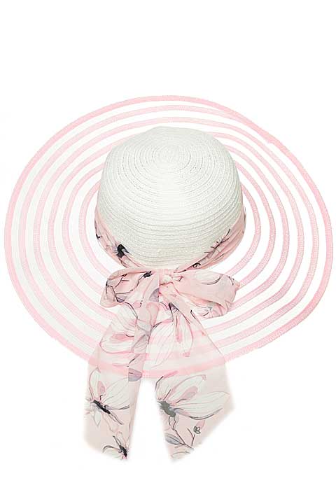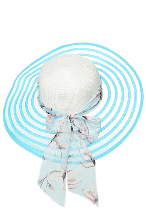 Шляпа с широкими полями (шириной 12,5 см) выполнена из узкой трикотажной тесьмы По окружности шляпы пришита лента (шириной 2 см) для комфортной посадки на голову.
