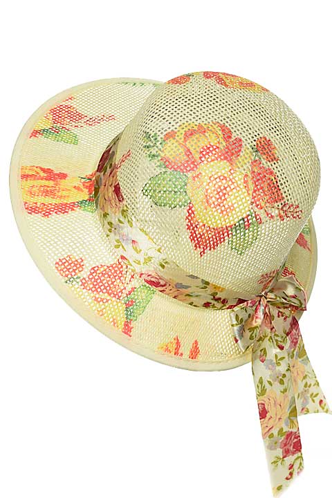 Шляпа с небольшими полями шириной 8 см, выполнена из бумажной соломки. По окружности шляпы пришита лента (шириной 1,5 см) для комфортной посадки на голову.