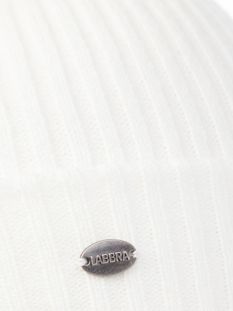 Женская модель шапки бини с отворотом выполнена из смесовой пряжи с добавлением кашемира. Очень мягкая, но при этом теплая шапка. Аксессуар выполнен как в модных цветах, так и в базовых.  Лицевую часть шапки украшает фирменная фурнитура с логотипом Labbra.