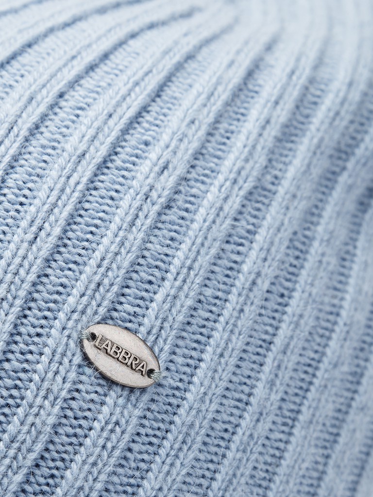 Классическая форма шапки-бини выполнена из смесовой пряжи с ангорой в составе. В модели используется вертикальное плетение классической резинкой, что обеспечивает мягкую драпировку.  Шапка легкая и теплая благодаря полушерстяному подвязу. В такой шапке будет тепло даже в стойкие морозы, а цвет, особенно актуальный в этом сезоне, сделает Ваш образ стильным и современным.