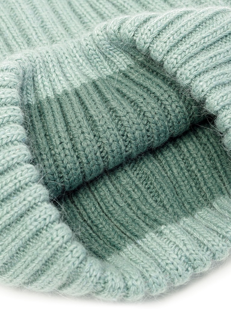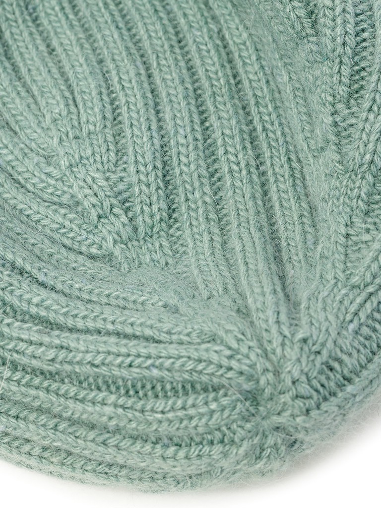 Классическая форма шапки-бини выполнена из смесовой итальянской пряжи с ангорой в составе. В модели используется вертикальное плетение классической резинкой, что обеспечивает мягкую драпировку.  Шапка легкая и теплая благодаря полушерстяному подвязу. В такой шапке будет тепло даже в стойкие морозы, а цвет, особенно актуальный в этом сезоне, сделает Ваш образ стильным и современным.