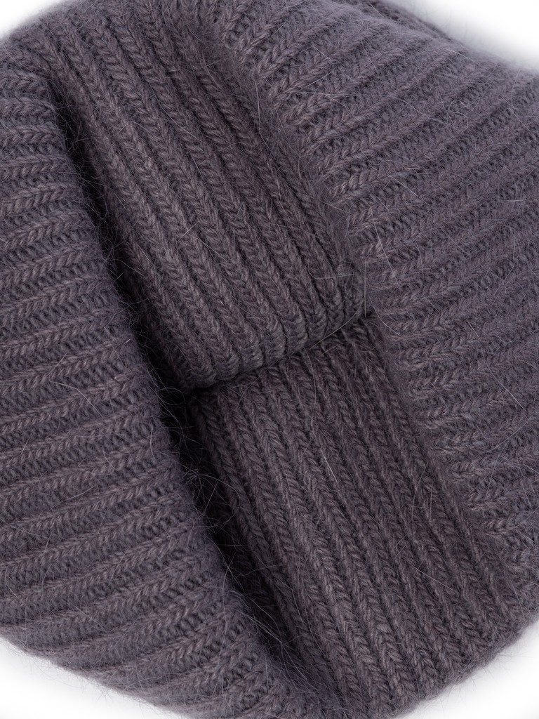 Классическая модель шапки-бини увеличенного обьема  выполнена из пряжи с высоким содержанием ангоры в ней. Такая конструкция шапки легко драпируется на затылочной части. Модель представлена в широком диапазоне цветов.