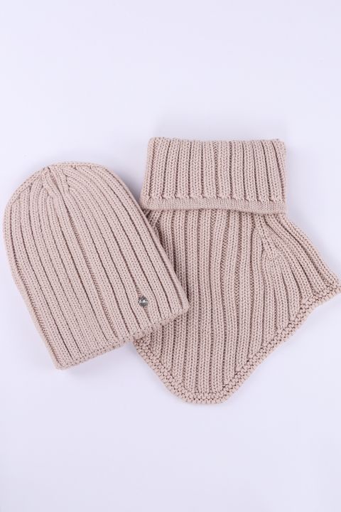 Комплект: шапка и манишка. Выполнен из хлопка (премиум качества). Вязка плотная и эластичная имеет мягкую текстуру.