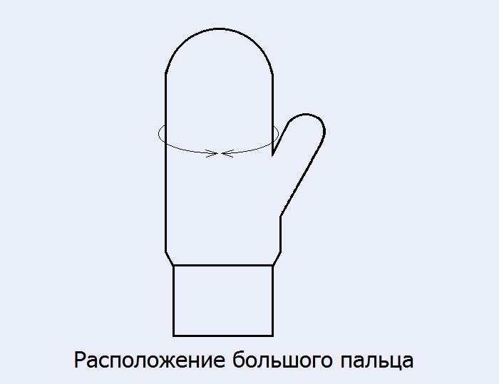 С большим пальцем расположенным снаружи ладони (см. схему).