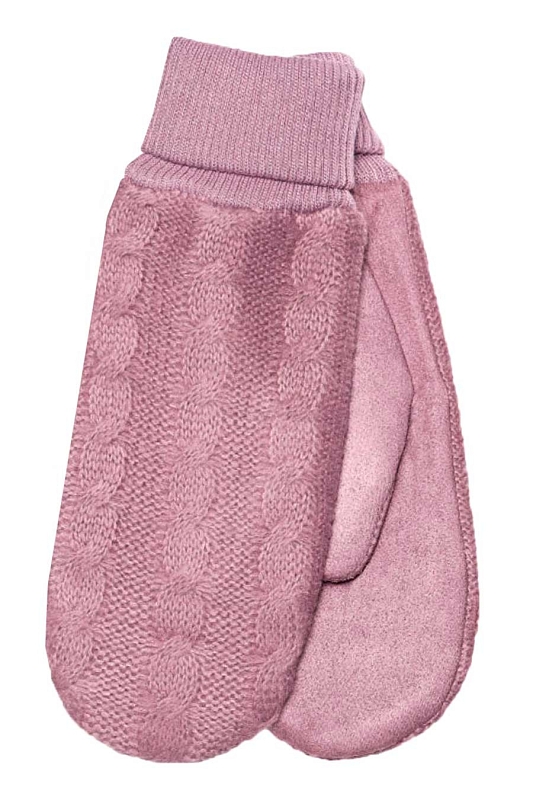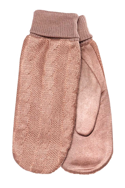 Варежки женские с отворотом (отворот разгибается), внутри подклад велсофт. Комбинированные: ладонь - иск.замша, сверху - вязаный узор.