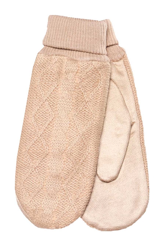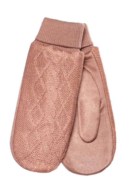 Варежки женские с отворотом (отворот разгибается), внутри подклад велсофт. Комбинированные: ладонь - иск.замша, сверху - вязаный узор.
