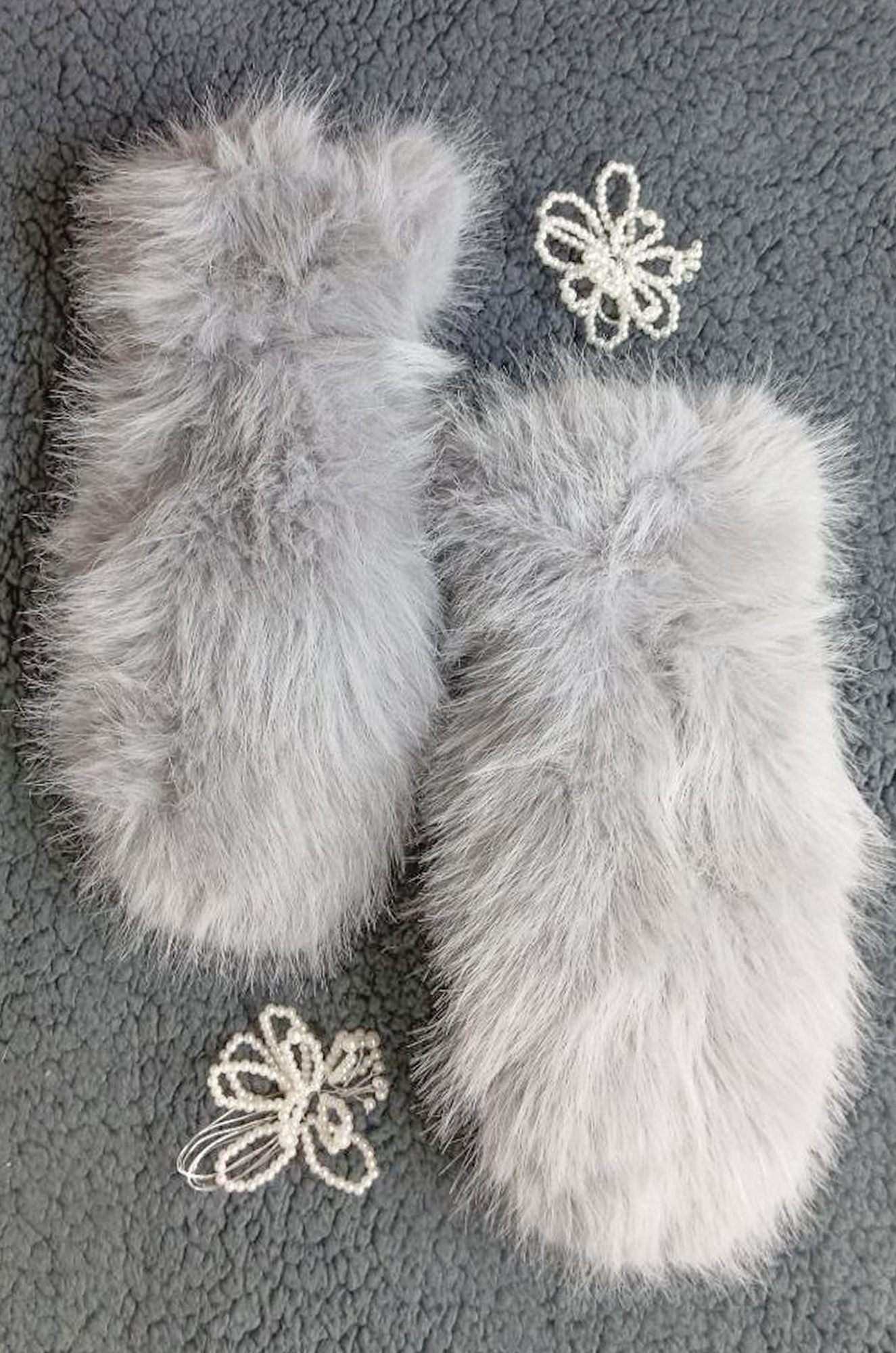 Женские варежки с длинным искусственным мехом. Подкладка из короткого густого приятного к телу искусственного меха. На запястье внутренняя резинка для лучшего прилегания варежки к руке. Пазмер универсальный