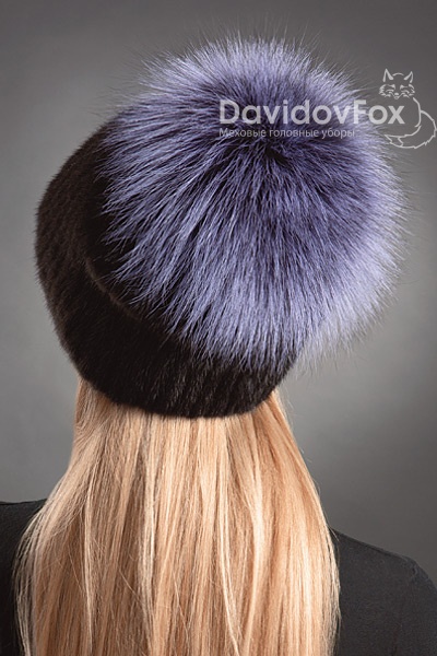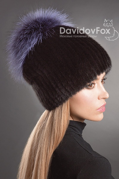 Шапка женская Буратино норка блэк помпон сумеречный