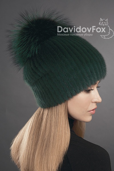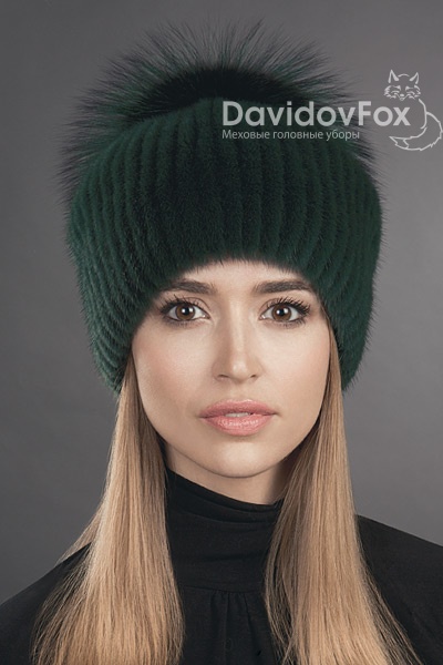 Шапка женская Буратино норка изумруд