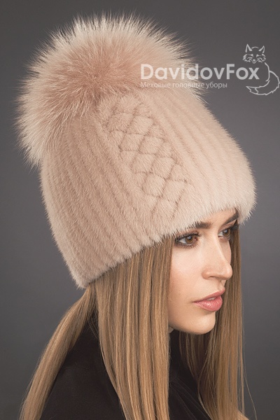 Шапка женская Лыжница норка орнамент дымчатая роза