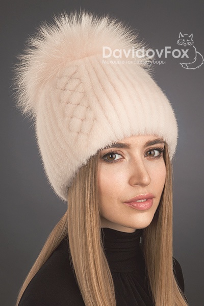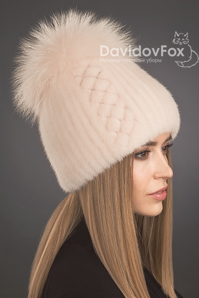 Шапка женская Лыжница норка орнамент розовый жемчуг