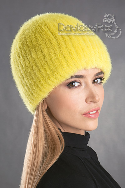 Шапка женская Сноп норка горчица